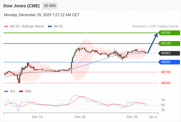 在 48850 之上,看涨,目标价位为 49130 ,然后为 49290 。