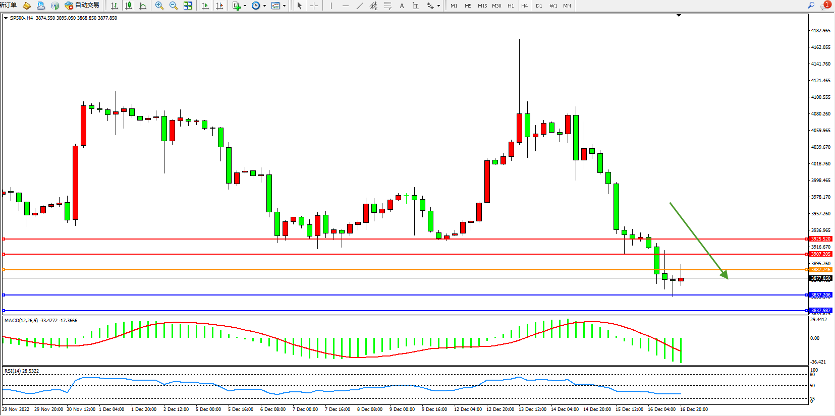 标普500指数收跌43.39点,跌幅1.11%,报3852.36点,最近三个交易日(美联储缩小加息幅度至50个基点当天以来)累跌4.17%,本周累计下跌2.08%。随着2022年即将结束,美国的商业状况正在恶化,料第四季度GDP的年化增长率约为1.5%。同时,由于制造业和服务业的企业在客户需求低迷的情况下对招聘采取了更加谨慎的态度,就业增长已经放缓到了极点。