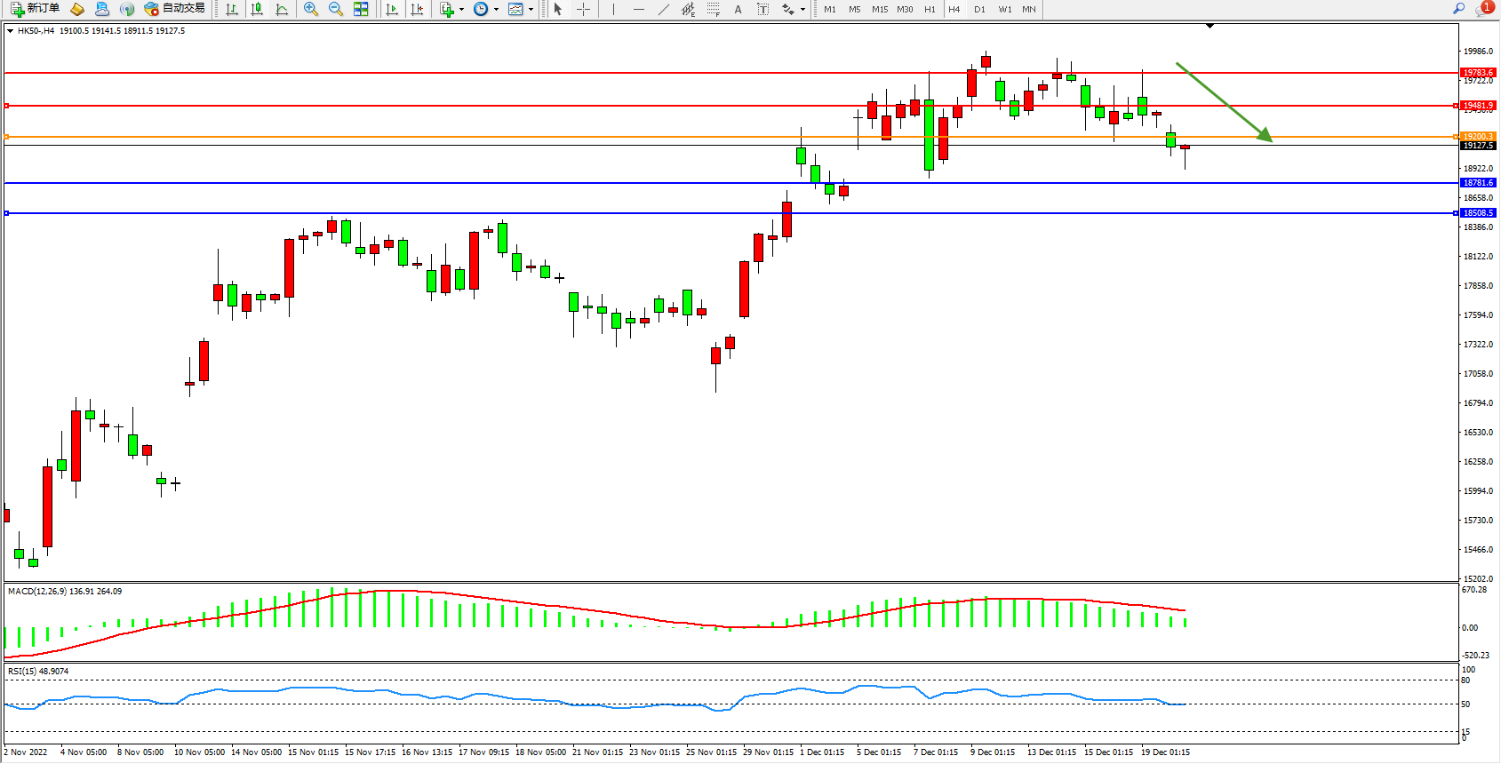 恒指HK50 4小时图